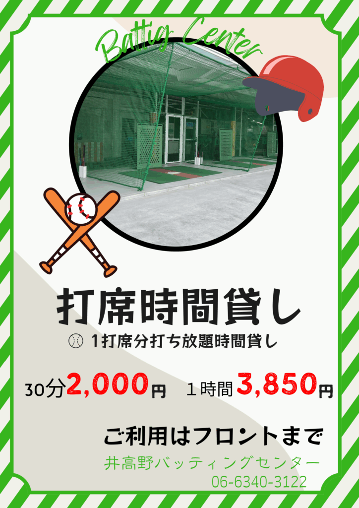 2025.11.1~2025.11.30まで井高野バッティングセンターの打席時間貸しサービスを、