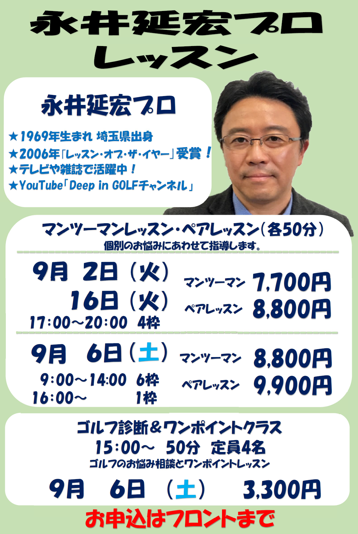 予約は、開催前日フロント営業時間内までにお願いします! 永井プロがお悩み事を解決してくれます!